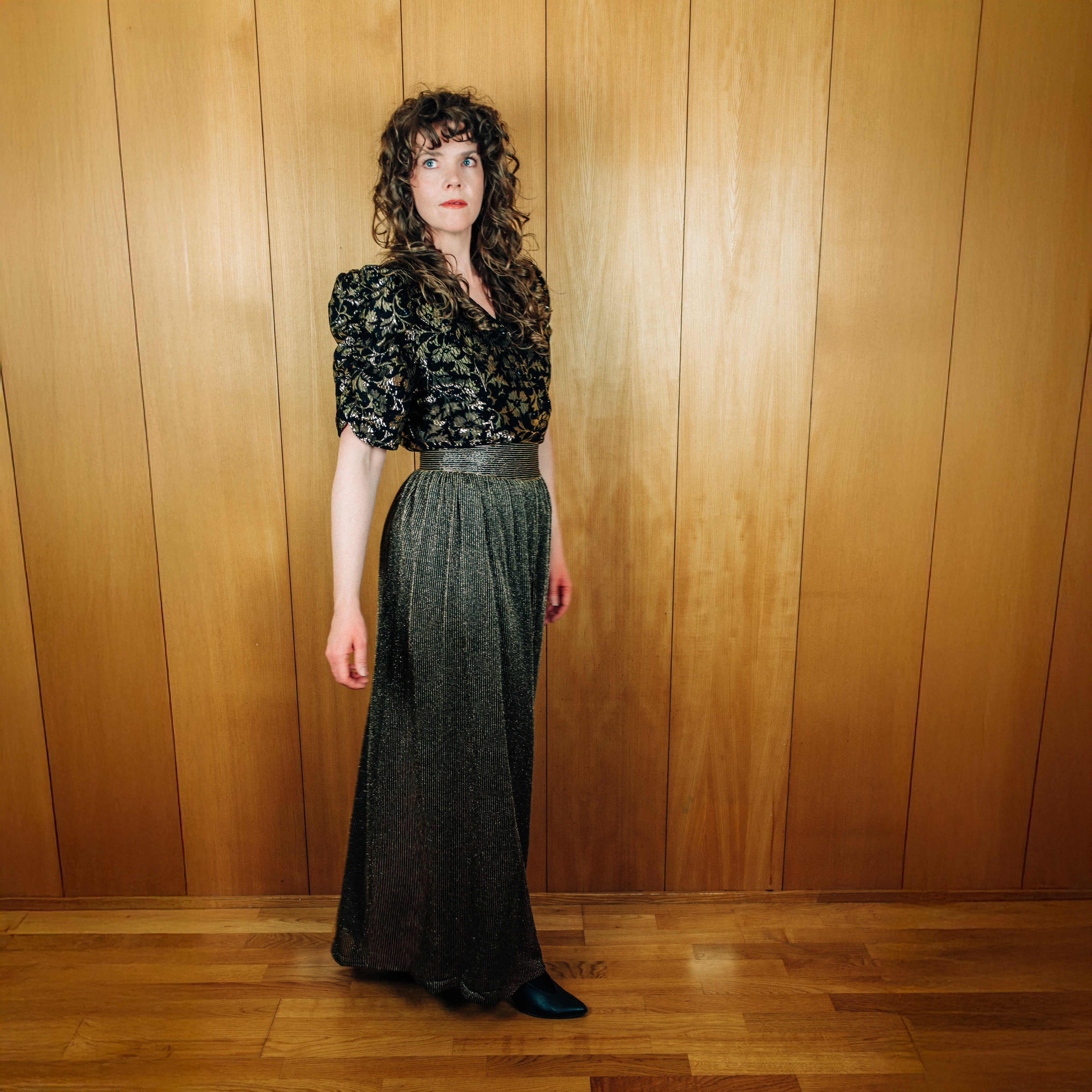 Vintage útvíðar brúnar flauelsbuxur - medium