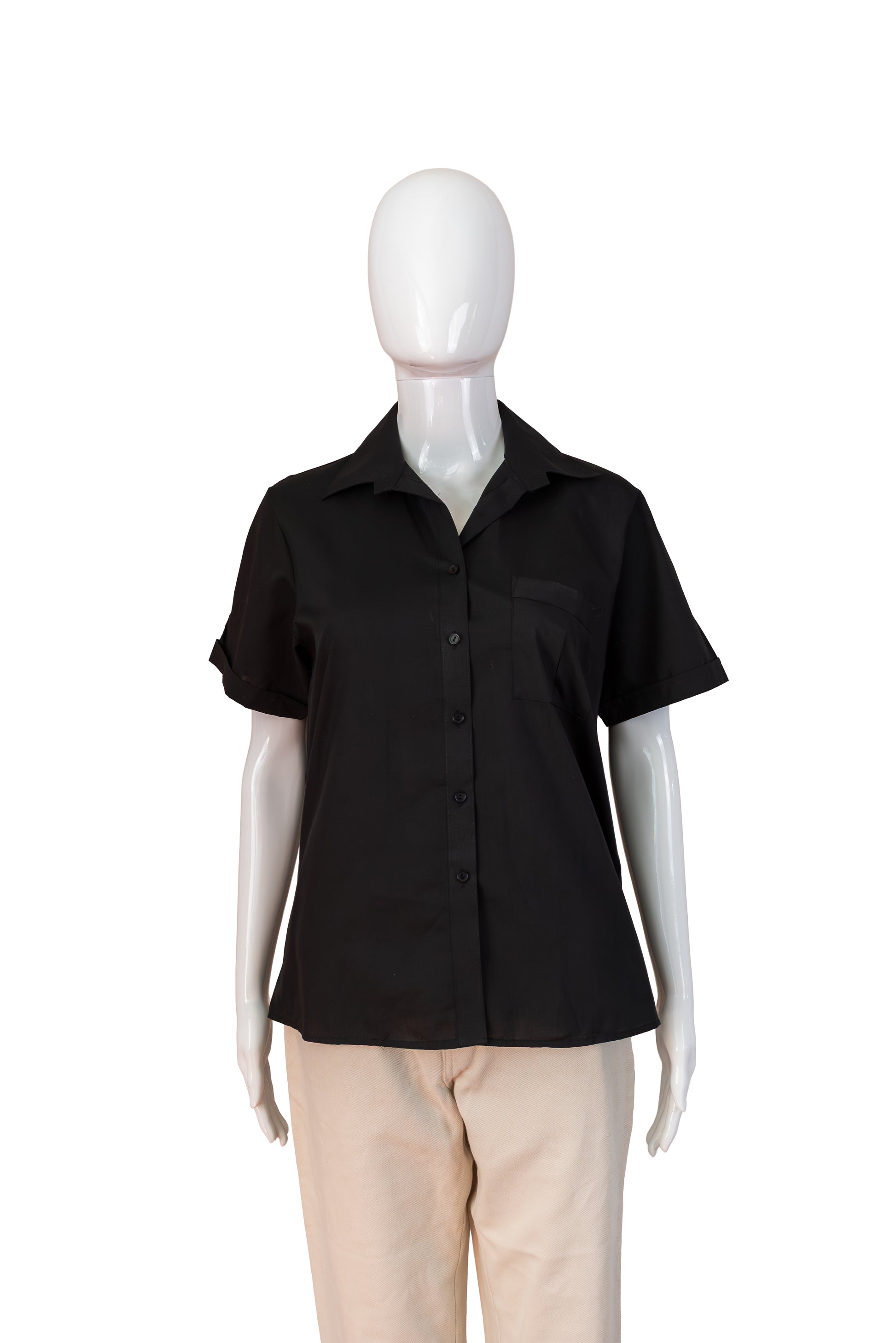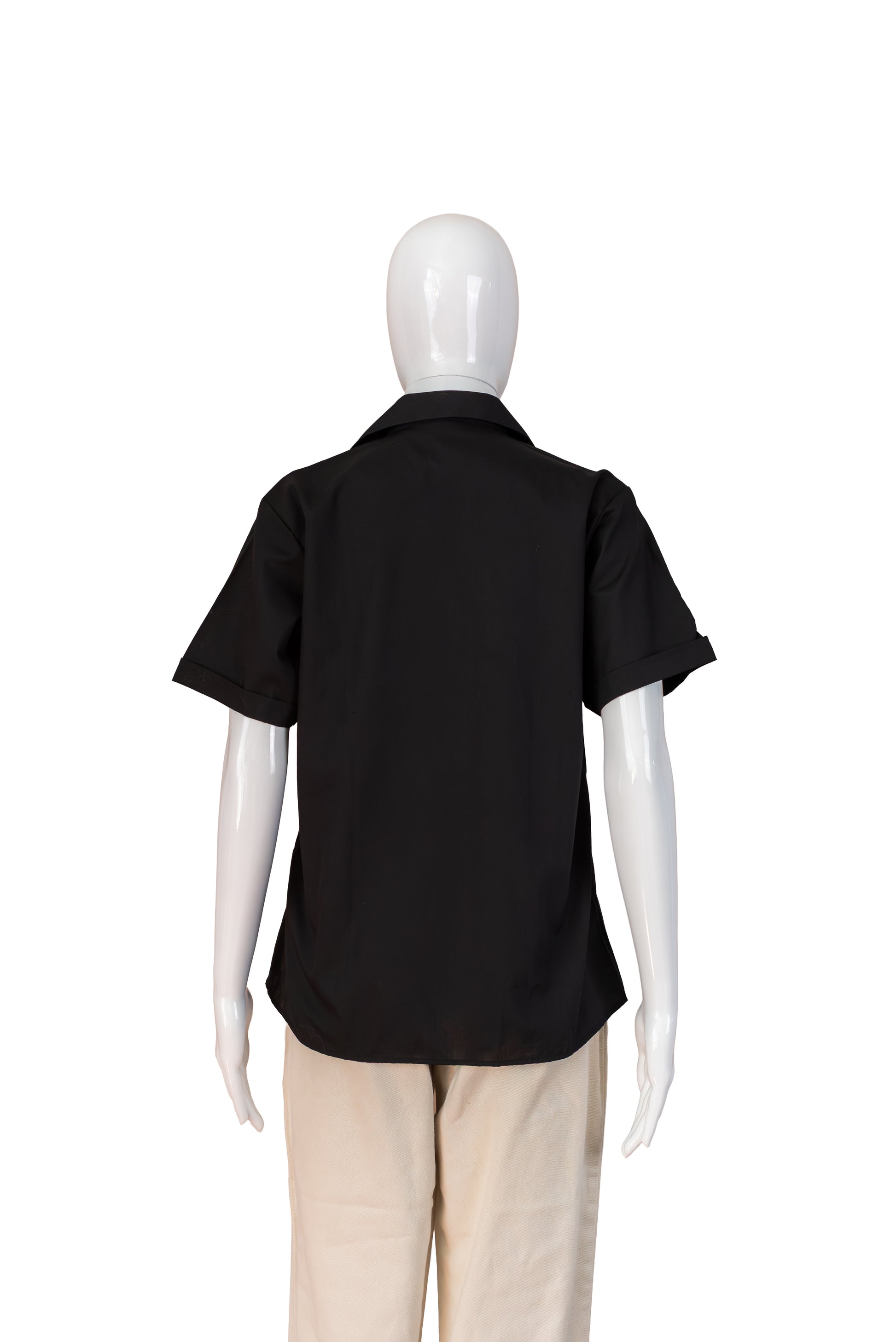 C&At vintage skyrta. Svört, hneppt. Úr 65% polyester, 35% bómull. Merkt stærð 38. Áætluð stærð S.