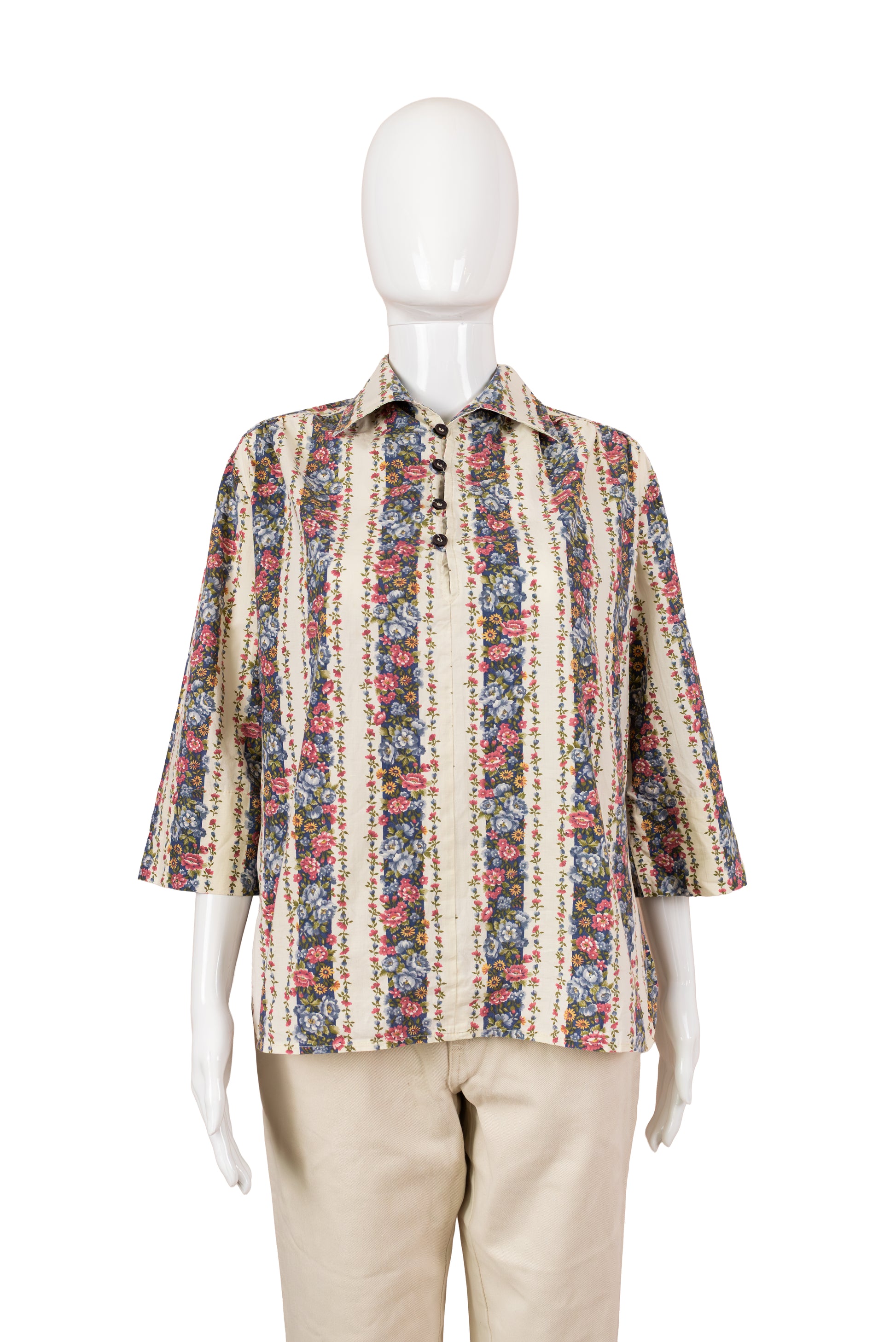 Dombo vintage skyrta með blómamunstri. Hneppt efst. Með 3/4 ermum. 100% bómull. Stærð S - M.