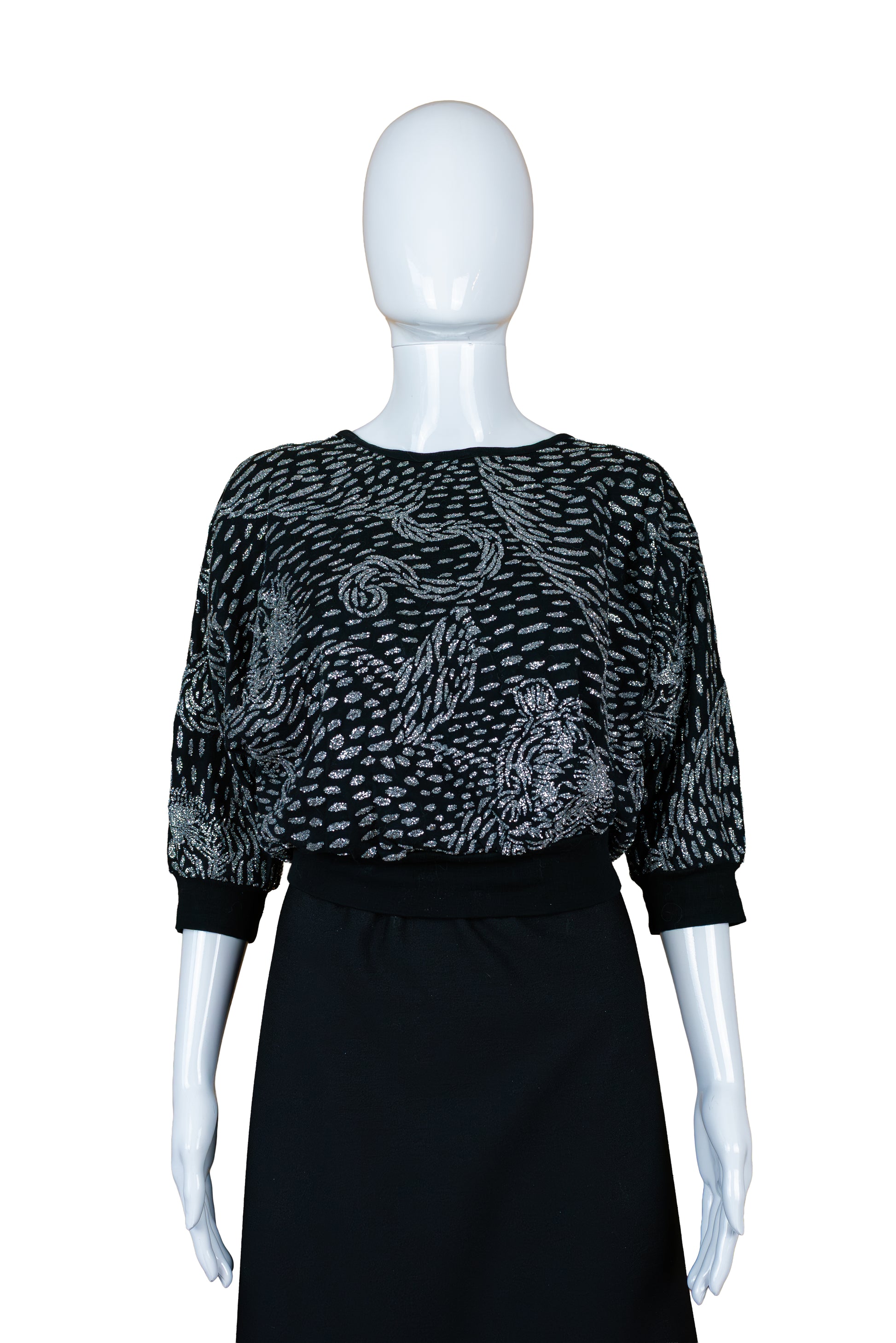 Golden gate vintage 80s peysa. Svört með silfruðu munstri. 100% bómull . Ástand mjög gott. Merkt stærð 40/42 Áætluð stærð M.