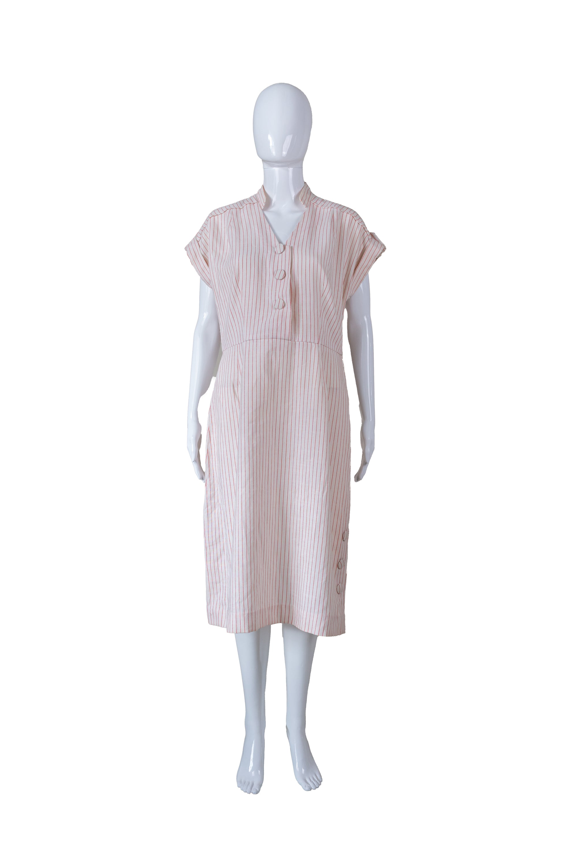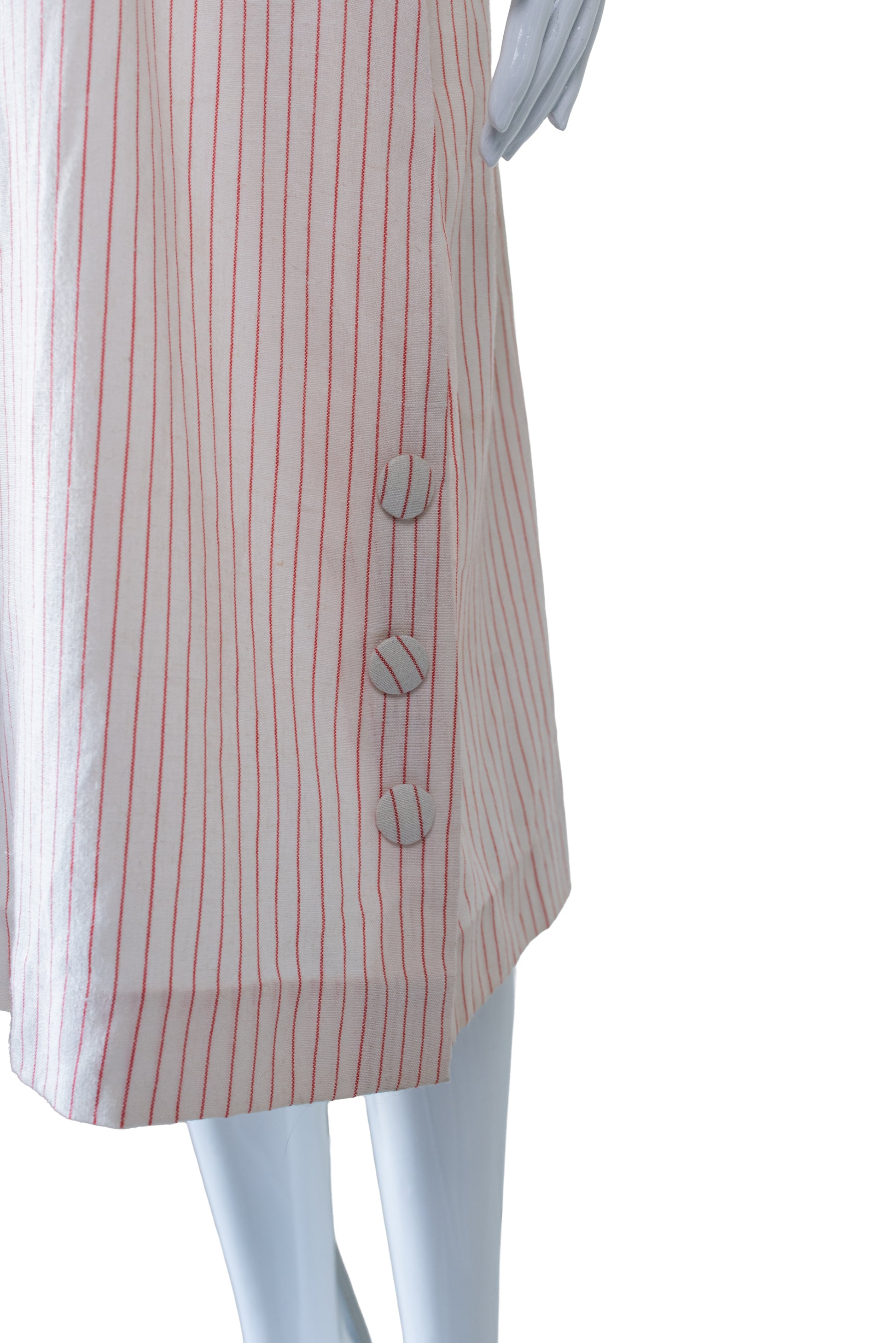 Vintage 80s kjóll. Hvítur með rauðum röndum. Ómerktur. Með smellum að framan og á hlið. Efni teygist ekki. Ástand gott. Stærð M - L