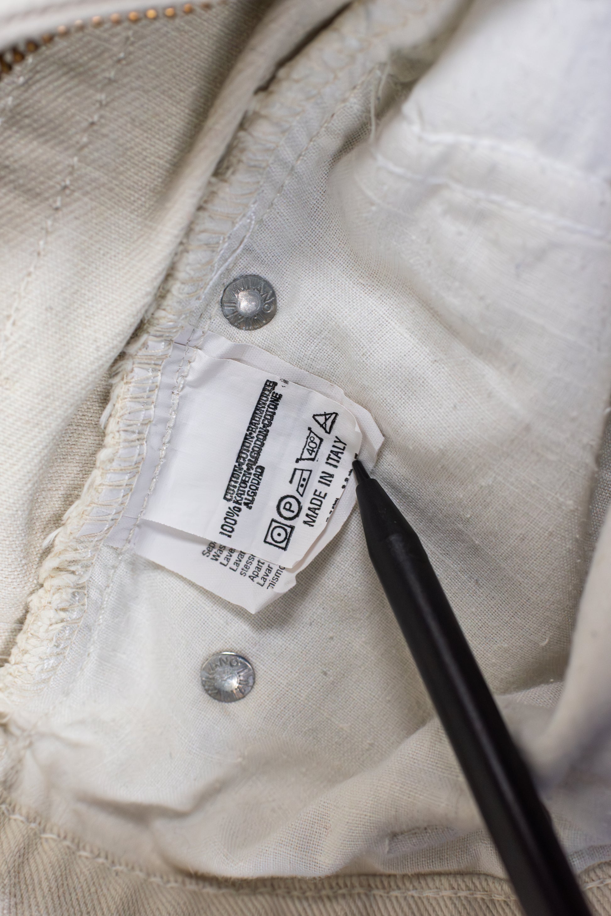 Allar vörur í versluninni eru notaðar og flestar áratuga gamlar. Þær eru því með eðlilegt slit. Hver flík er skoðuð og tekið fram í lýsingu ef það vantar tölur eða álíka. Hins vegar getur okkur alltaf yfirsést eitthvað. Mælt er með að þvo flíkur áður en þær eru notaðar.