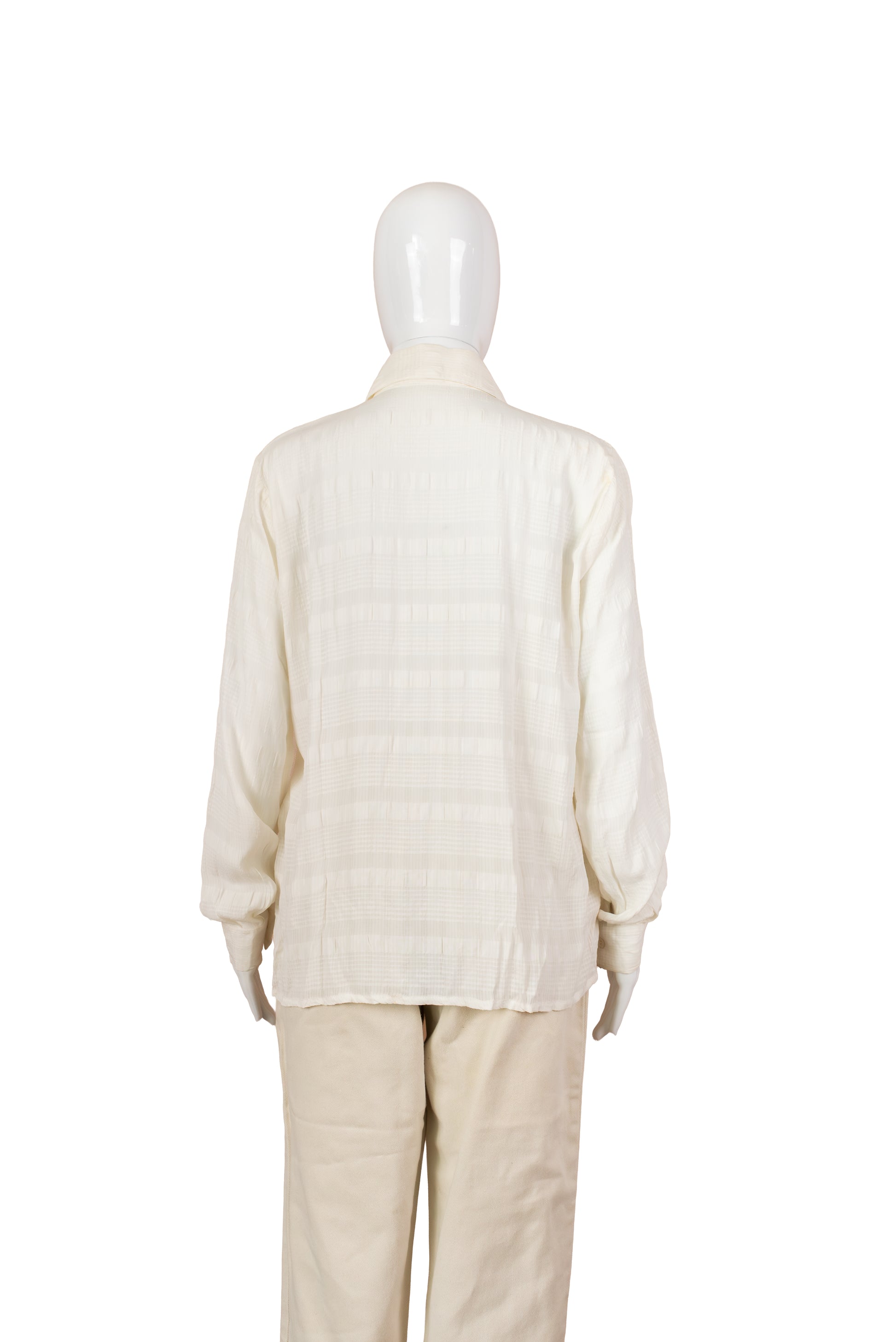 Ómerkt síðerma hvít vintage skyrta. Hneppt. Líklegast úr viskós. Stærð M.