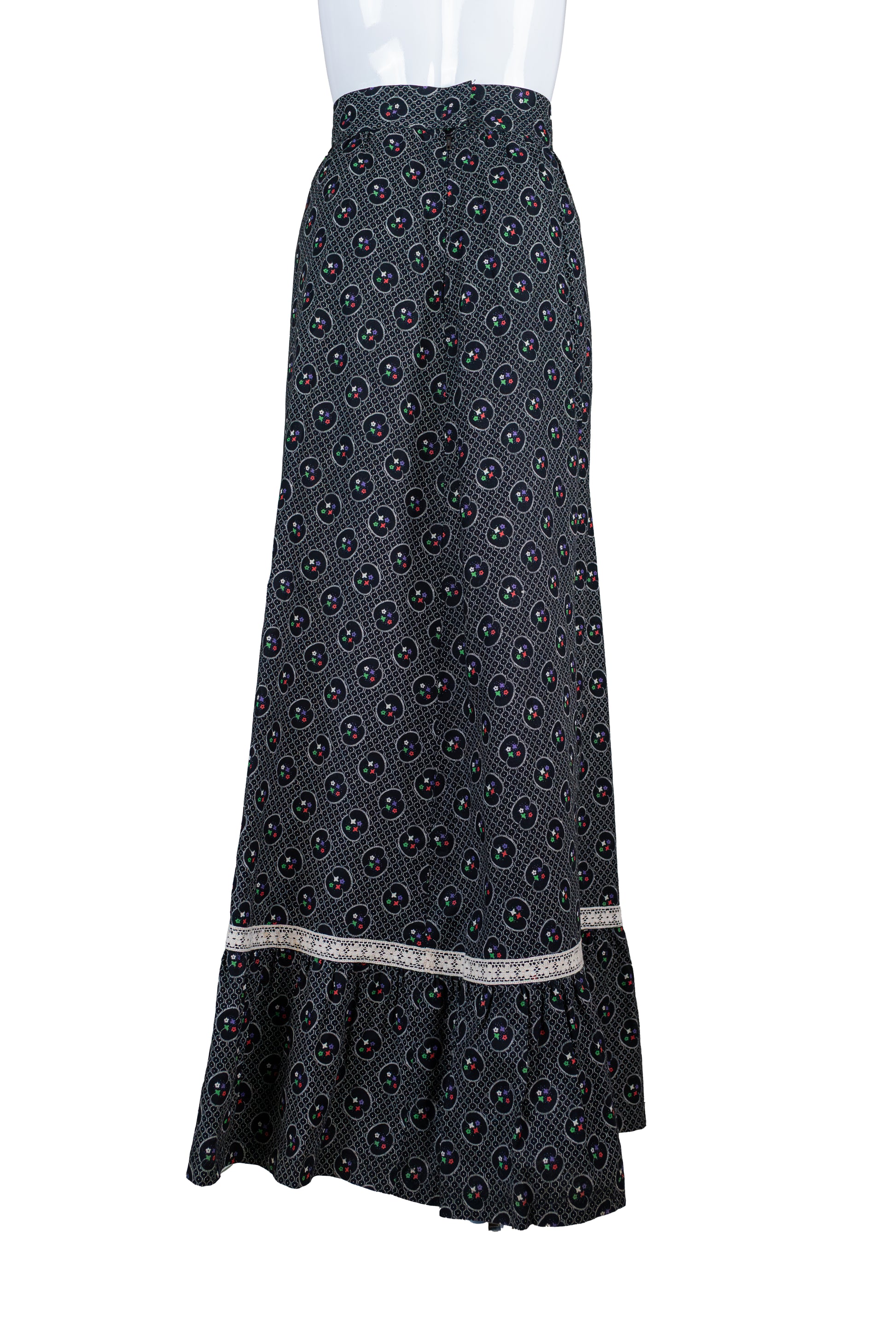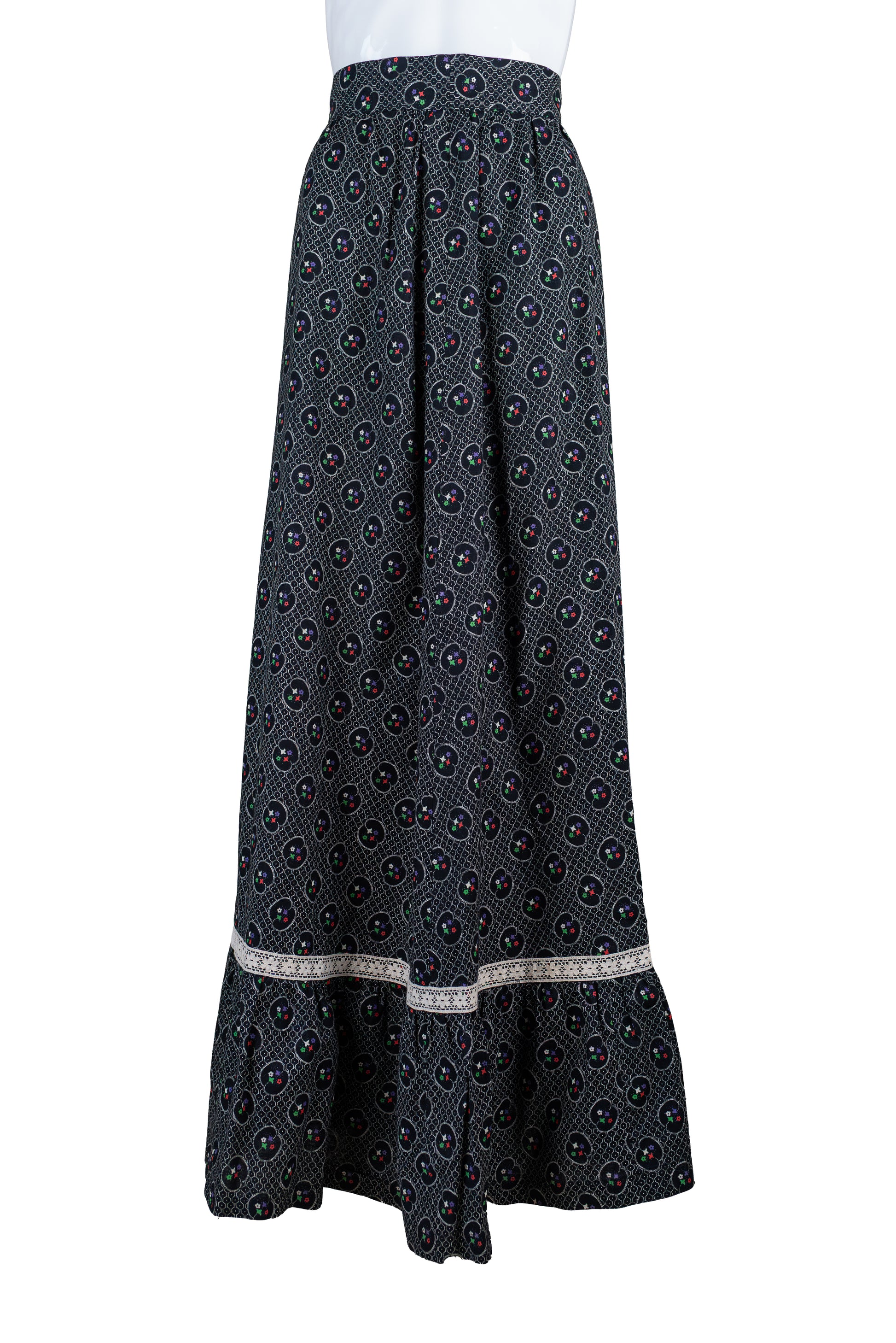Ómerkt svart og doppótt vintage 70s síðpils - xsmall