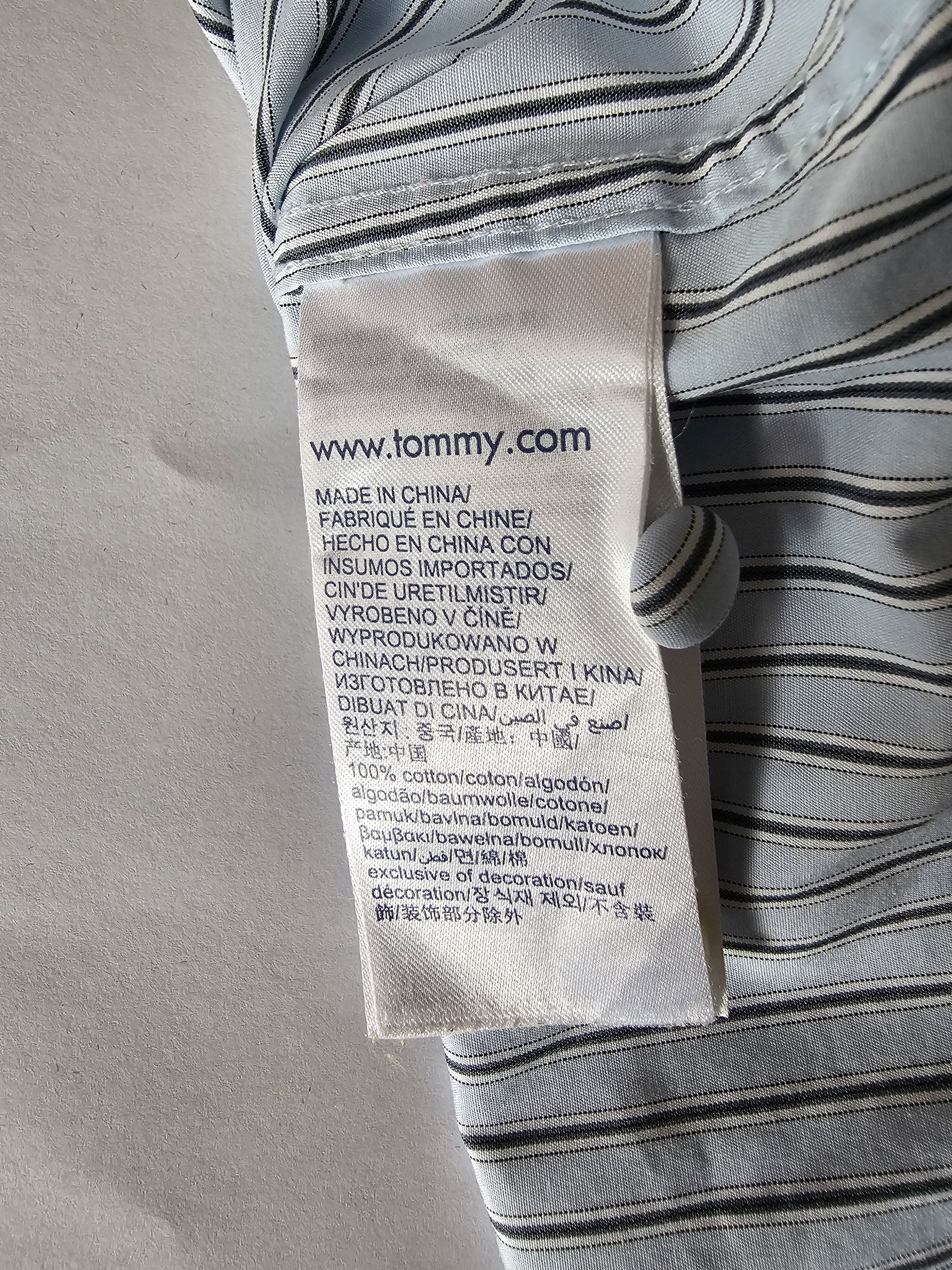 Tommy Hilfiger bláröndótt skyrta. Hneppt. 100% bómull. Merkt stærð 42. Regular fit. Mæld stærð M.