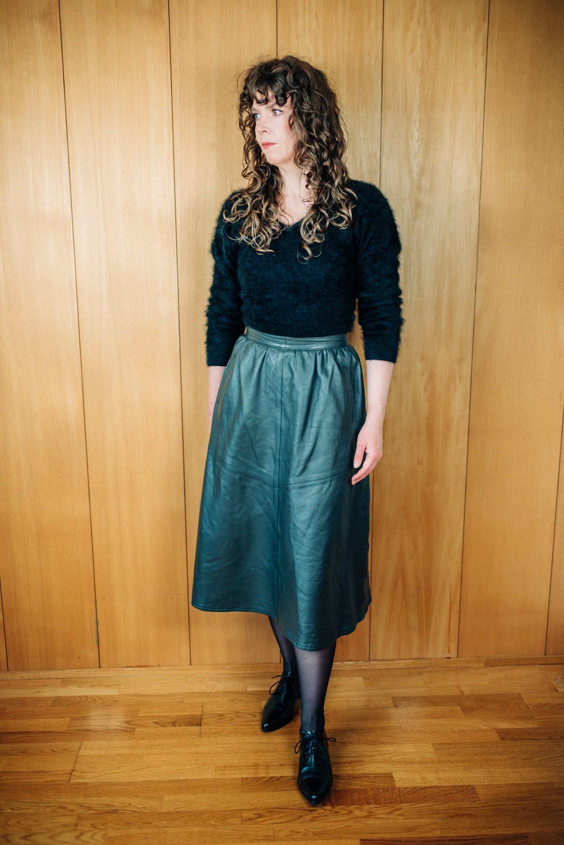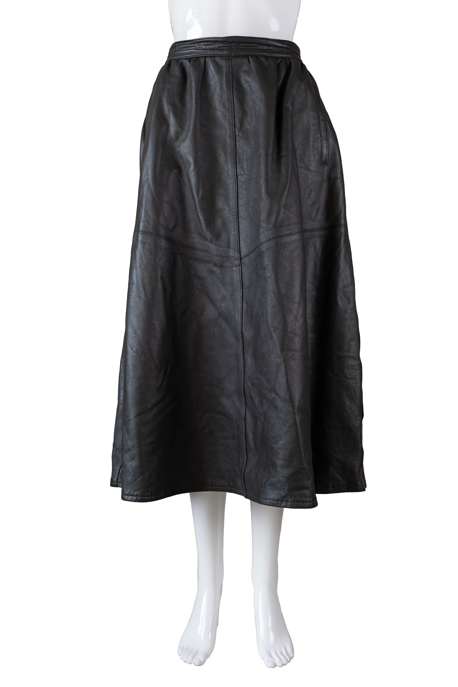 Ómerkt vintage sítt svart/ dökk grátt leðurspils með vösum. Ekta leður. Ástand mjög gott. Mæld stærð M.
