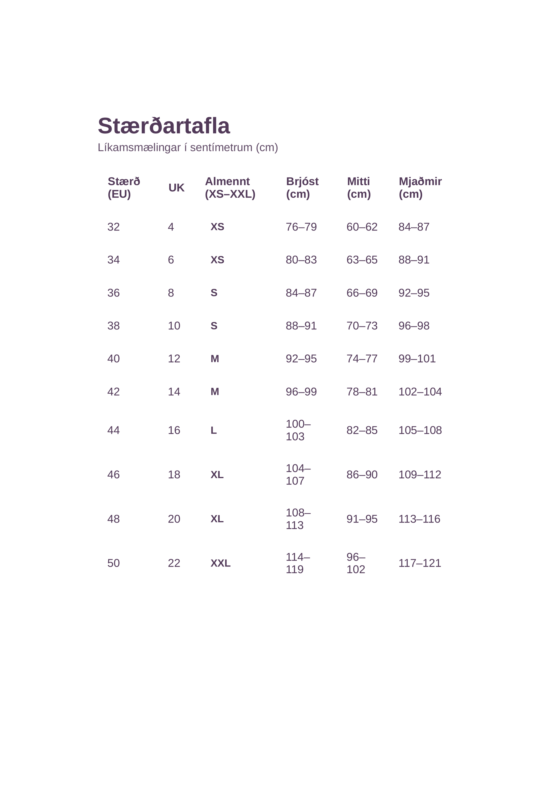 - Brjóst: 110 cm