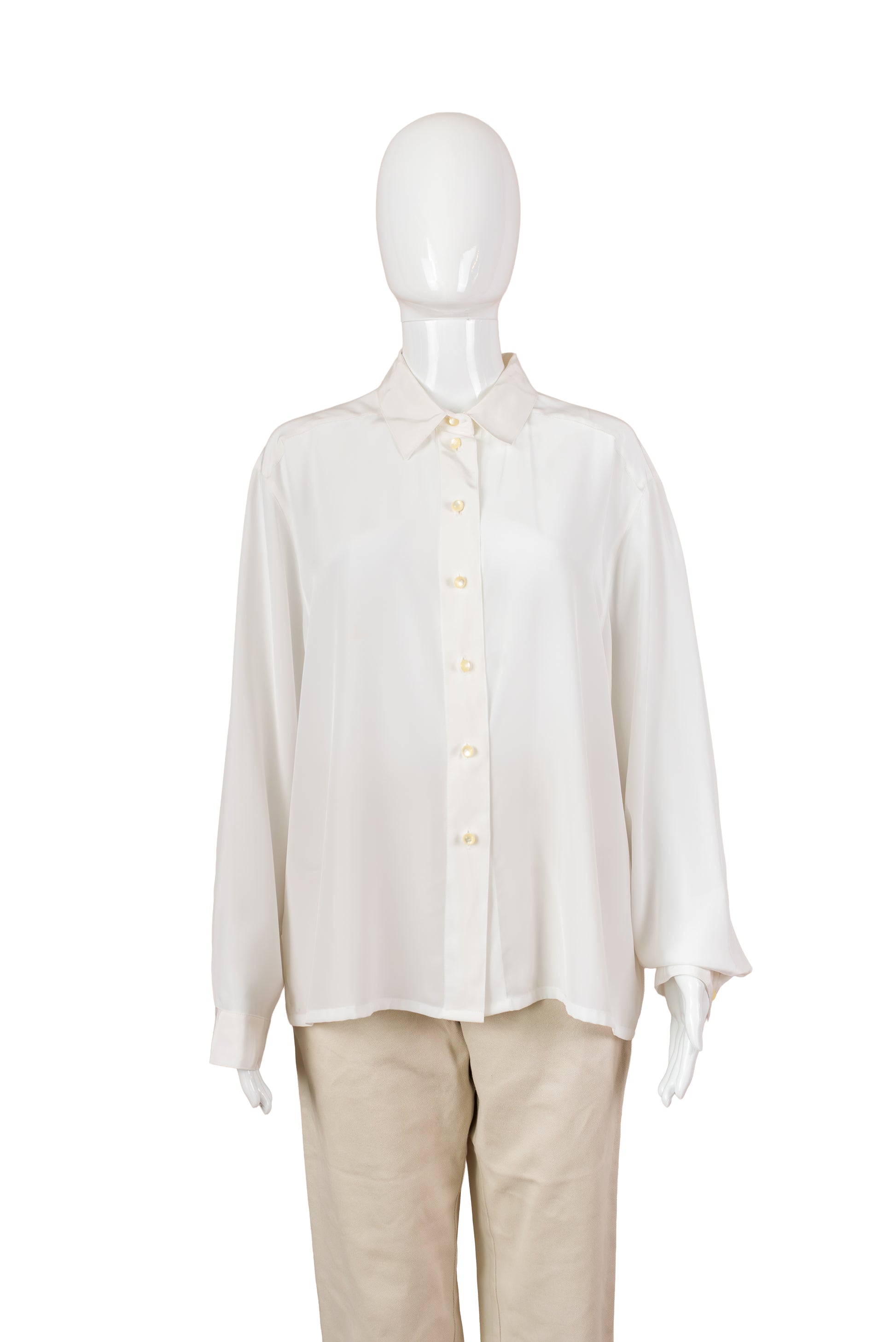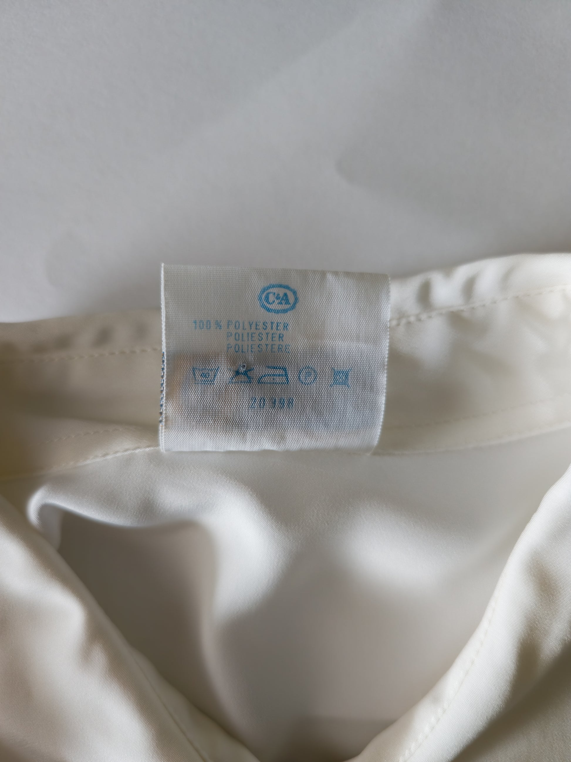 Hvít/kremuð Your Sixth Sense vintage skyrta. Hneppt. 100% polyester. Merkt stærð 42. Mæld stærð M.